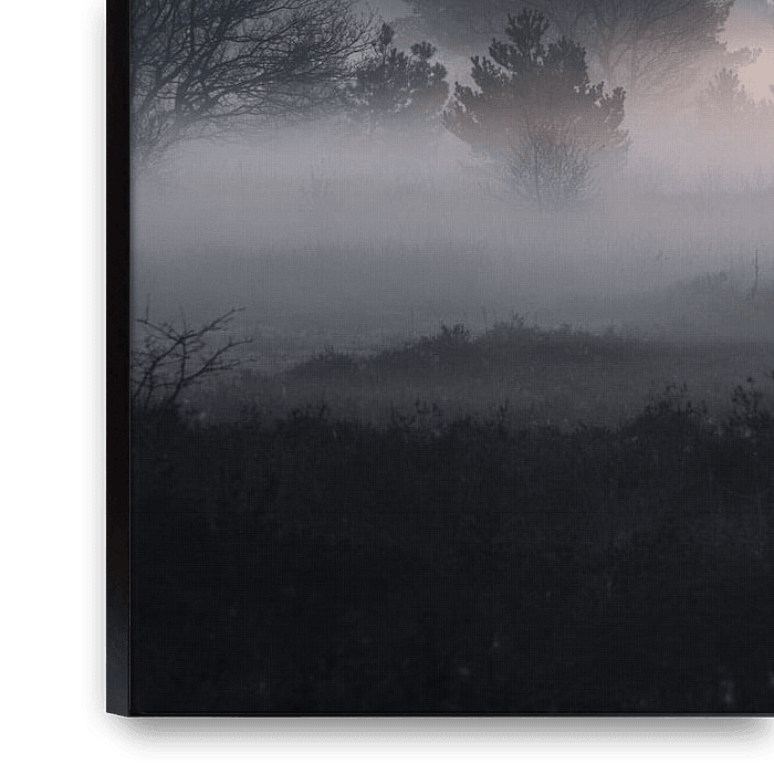 Bestelle dieses Landschafts-Wandbild Morgennebel auf dem Houtdorperveld von Erwin Pilon als Reproduktion auf Leinwand, Alu-Dibond, als Poster, Fototapete oder Acrylglasbild.