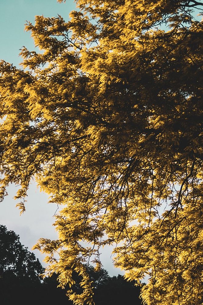 Am Ijzeren Vrouw fängt dieser Baum die ersten Strahlen der Morgensonne ein, während der Teich auf der anderen Seite noch im Schatten liegt.
