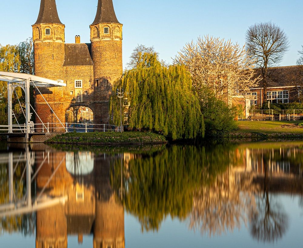 Das Osttor selbst ist ein besonderes Denkmal. Um 1400 erbaut, ist es das einzige erhaltene Stadttor von Delft. Mit seinen zwei eleganten Türmen und gotischen Details atmet es Geschichte. Jahrhundertelang diente es der Verteidigung, heute ist es ein stiller Zeuge vergangener Zeiten - und ein beliebtes Symbol der Stadt.