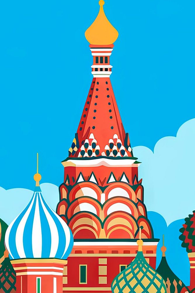 Ein farbenfrohes Meisterwerk aus üppigen Zeltkuppeln und majestätischen Türmchen erweckt das Herz Moskaus zum Leben. Mit ihren schimmernden Farben und verspielten Formen strahlen die ikonischen Gebäude eine unverwechselbare Pracht aus, während der strahlend blaue Himmel eine einladende Kulisse schafft. Ein visuelles Fest für alle Sinne, das die magische Atmosphäre der russischen Hauptstadt einfängt.