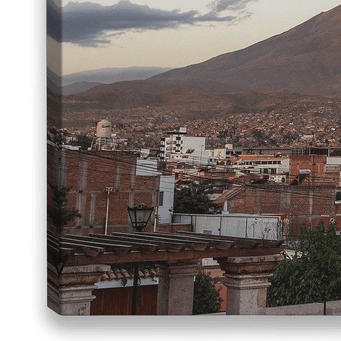 Der fast 6.000 Meter hohe Misti ist ein großer Vulkan im Süden Perus. Bei Sonnenuntergang ist der Vulkan wunderschön beleuchtet.