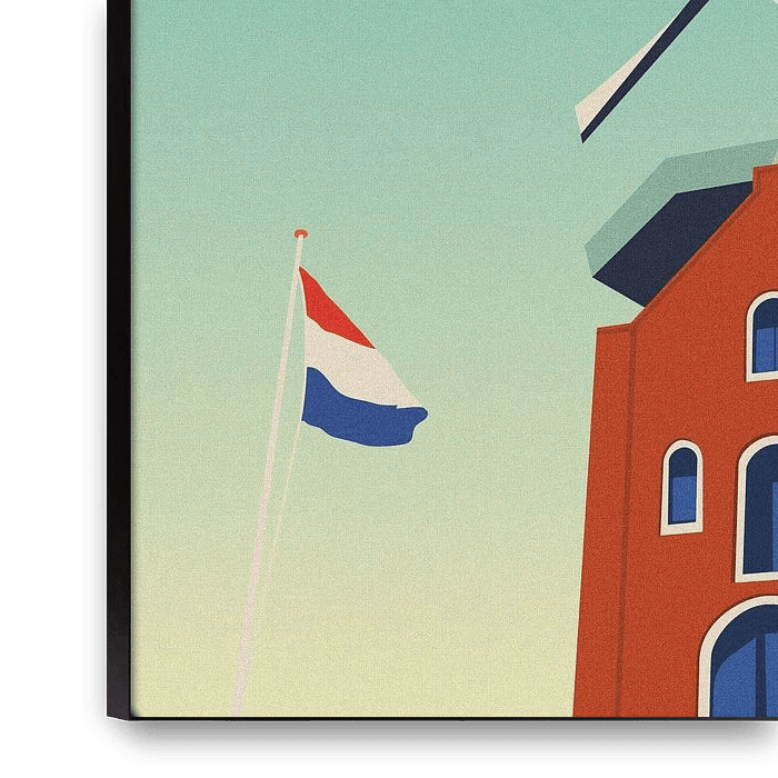 Bestelle diese Illustration Mühle Adriaan Haarlem von Erwin van Wijk als Reproduktion auf Leinwand, Alu-Dibond, als Poster, Fototapete oder Acrylglasbild.
