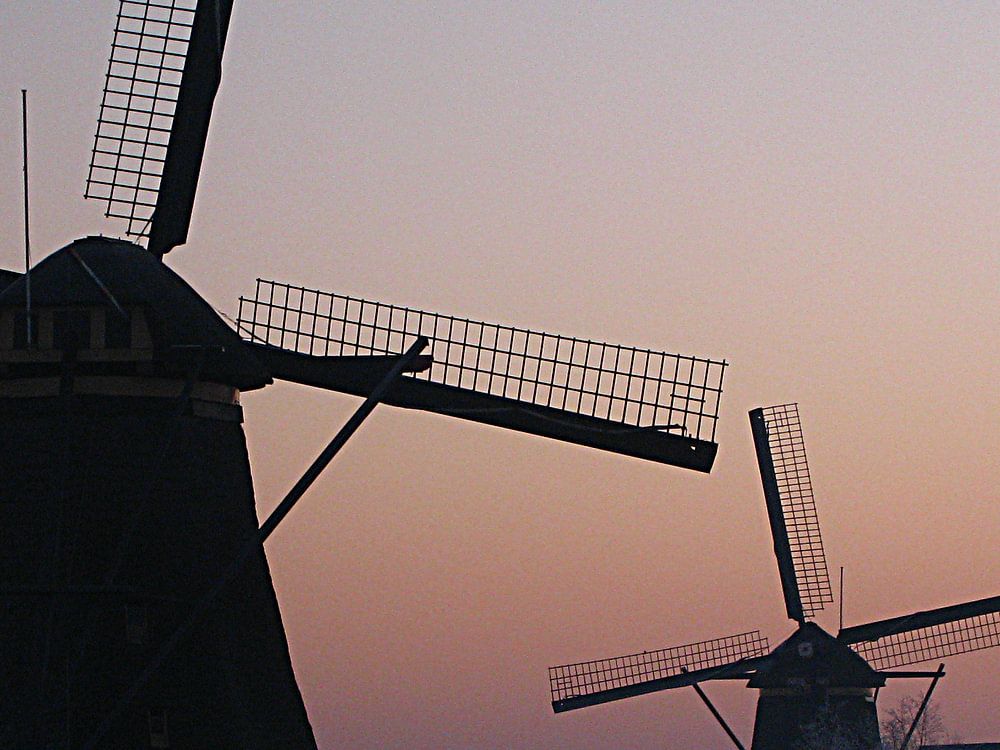 Mühle mit ein Schlitschuhläufer in Kinderdijk Holland