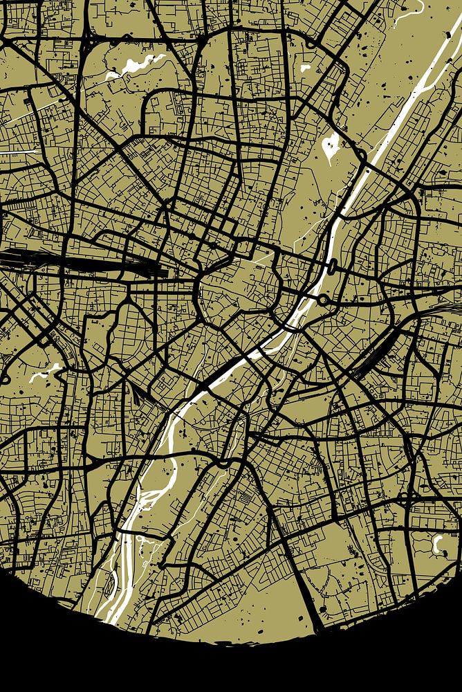 München – die Landeshauptstadt als abstrakter Stadtplan. Perfekt für echte Münchener*innen und alle, die diese Stadt lieben – auch als stilsichere Geschenkidee! Karte: © OpenStreetMap-Mitwirkende
