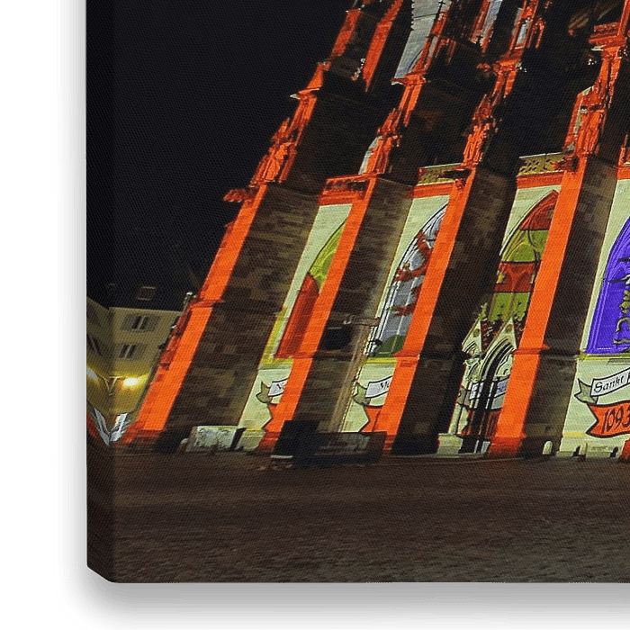 Bestelle dieses abstrakte Wandbild Münster Mapping Freiburg von Patrick Lohmüller als Reproduktion auf Leinwand, Alu-Dibond, als Poster, Fototapete oder Acrylglasbild.