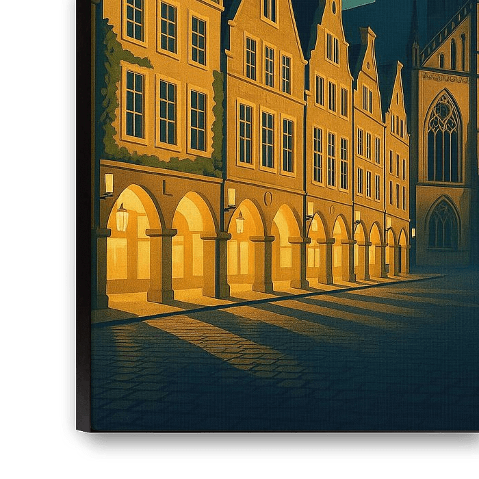 Egal, ob Sie Münster besucht haben oder einfach nur die gotische Architektur bewundern, dieses Wandbild schafft ein Gefühl von Nostalgie und Eleganz. Das Poster passt wunderbar in moderne Interieurs, in Räume mit Reisethemen oder als auffällige Dekoration für diejenigen, die kulturelle und historische Motive mögen. In hoher Qualität gedruckt, ist es ein hervorragendes Geschenk für Architekturliebhaber, Reisende oder alle, die sich ein Stück Deutschland nach Hause holen wollen. Verleihen Sie Ihrer Wanddekoration mit diesem Art-Déco-Poster einen Hauch von Münsters einzigartiger Atmosphäre.