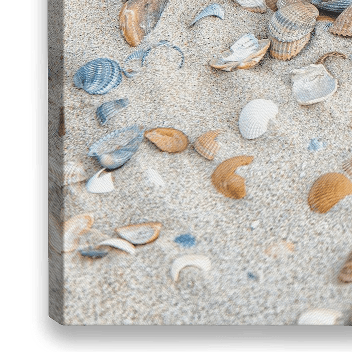 Bestelle das Foto Muscheln am Strand in der Nähe des Strandpfostens. von Ron van der Stappen als Reproduktion auf Leinwand, Alu-Dibond, als Poster, Fototapete oder Acrylglasbild.