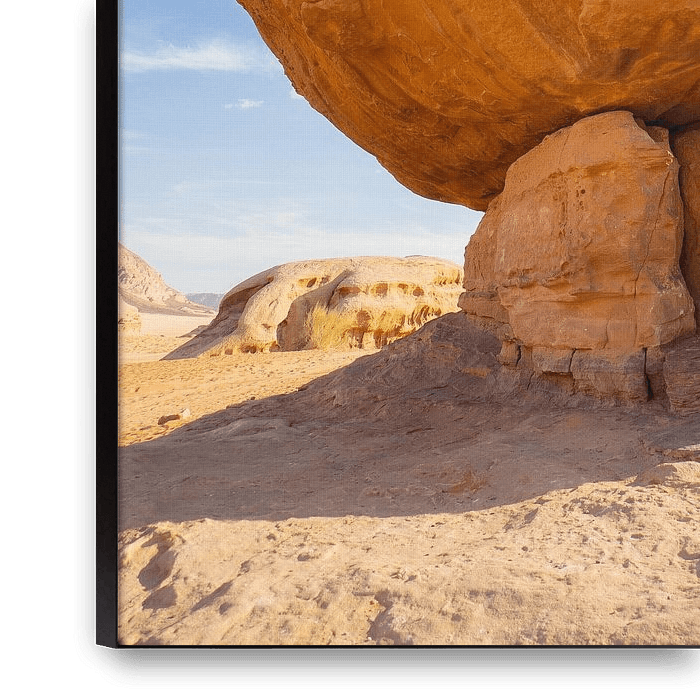 Bestelle dieses Landschafts-Wandbild Mushroom Rock in der Wüste Wadi Rum, Jordanien von Teun Janssen als Reproduktion auf Leinwand, Alu-Dibond, als Poster, Fototapete oder Acrylglasbild.