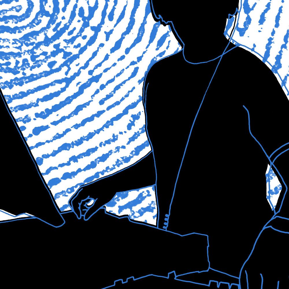 Anschließend wurden die mit Tinte aufgenommenen Fingerabdrücke und die anderen Zeichnungen digital zu dieser einen Arbeit kombiniert.