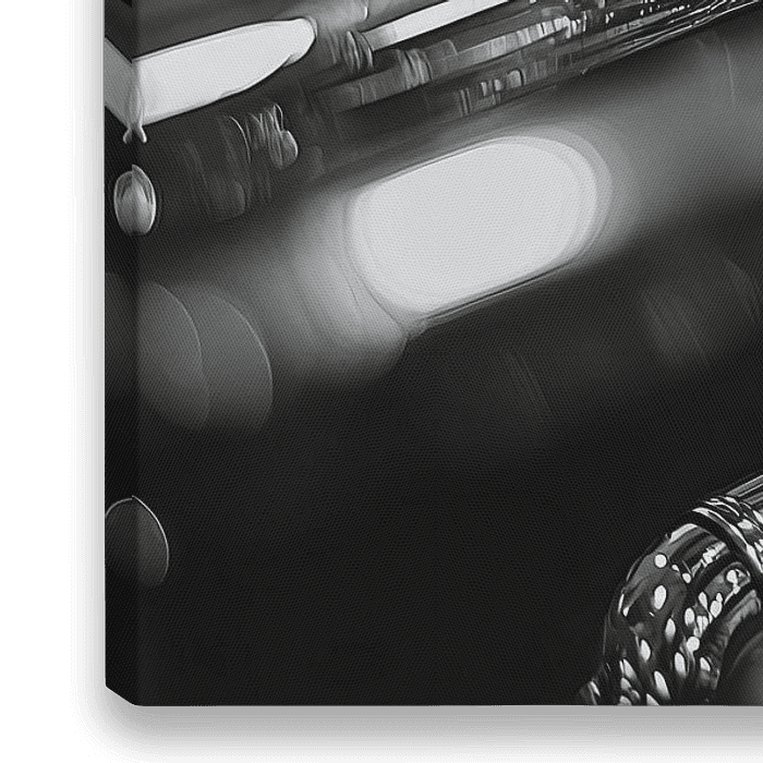 Bestelle dieses abstrakte Wandbild Musikinstrument in Schwarz und Weiß von Gelissen Artworks als Kunstdruck auf Leinwand, Alu-Dibond, als Poster, Fototapete oder Acrylglasbild.