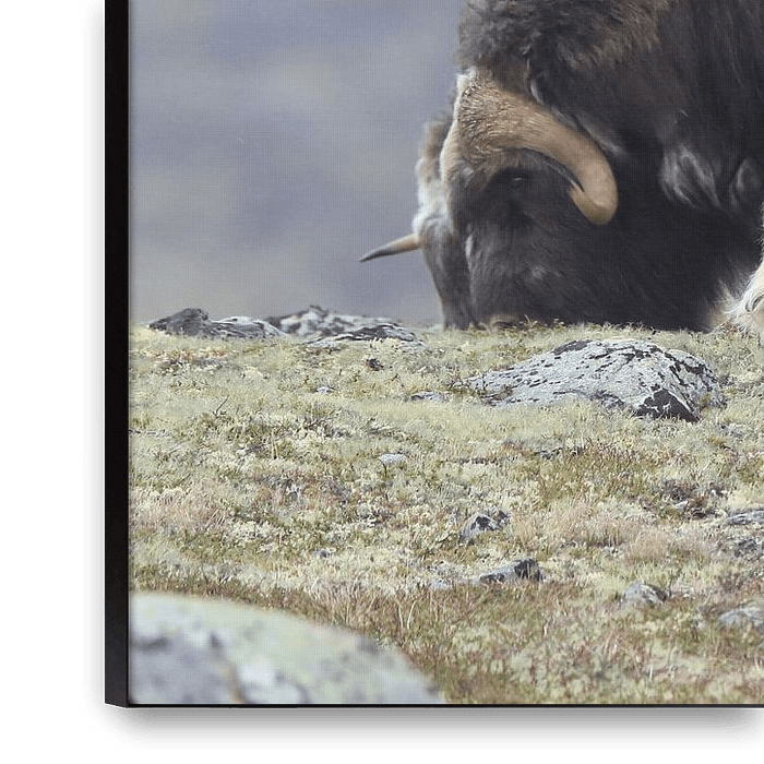 Bestelle das Foto Muskox in Dovrefjell national park,in the natural habitat, Norway von Frank Fichtmüller als Reproduktion auf Leinwand, Alu-Dibond, als Poster, Fototapete oder Acrylglasbild.