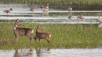 Über „Mutter Rehe mit Kalb im Wasser“ von Bas Ronteltap