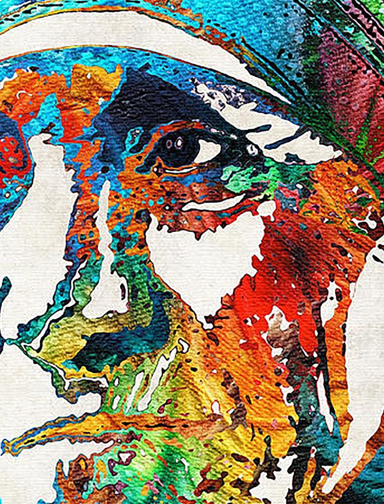 Bestelle diese Malerei Mutter Teresa von Helga Kawailani als Reproduktion auf Leinwand, Alu-Dibond, als Poster, Fototapete oder Acrylglasbild.