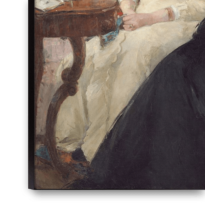Das Gemälde, ein Familienportrait und eine intime häusliche Genreszene, wurde begonnen, als Morisots Schwester Edma Pontillon im Winter 1869-1870 bei ihrer Familie blieb, um auf die Geburt ihres ersten Kindes zu warten, einer Schwangerschaft, die diskret von Edmas losem weißen Morgenmantel verhüllt wurde. Morisot war besorgt, das Gemälde in den Salon zu schicken, und bat Manet um Rat, und am letzten Tag für Einreichungen besuchte er das Morisot-Haus. Morisots Korrespondenz zeigt, dass Manet nicht verbale Vorschläge machte, sondern die Figur der Mutter des Künstlers umfassend neu bemalte. Manets suave Kurzschrift, die in den Gesichtszügen der Mutter und dem schwarzen Kleid zu sehen ist, unterscheidet sich offensichtlich von der nervösen Raffinesse von Morisots Berührung in den Gesichtszügen ihrer Schwes