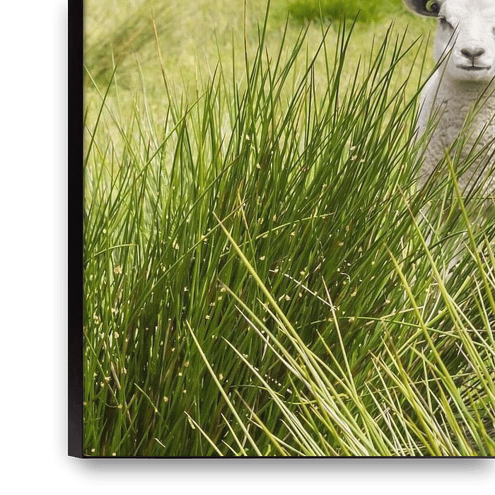 Bestelle dieses Landschafts-Wandbild Mutterschaf mit Lamm im hohen Gras in Drenthe von Marc Venema als Reproduktion auf Leinwand, Alu-Dibond, als Poster, Fototapete oder Acrylglasbild.