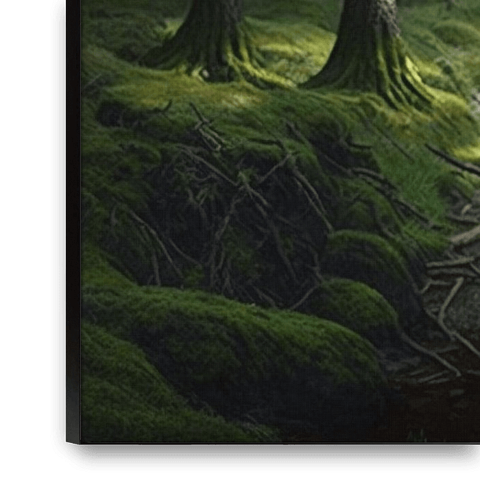 Bestelle dieses Landschafts-Wandbild Mystischer Waldbach von Vythryd Arts als Reproduktion auf Leinwand, Alu-Dibond, als Poster, Fototapete oder Acrylglasbild.