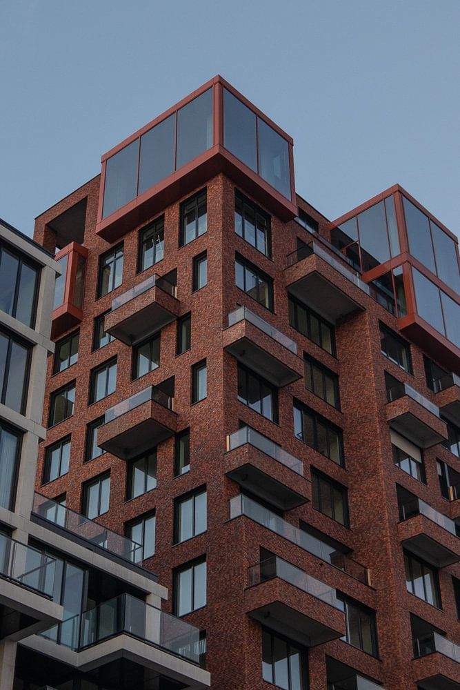 Dieses Foto wurde am NDSM-Kai in Amsterdam aufgenommen. Dieses Gebäude wurde bei Sonnenuntergang fotografiert.