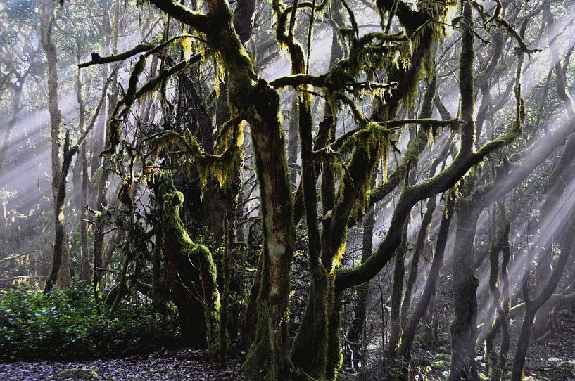 Sonnenstrahlen im Nebelwald
