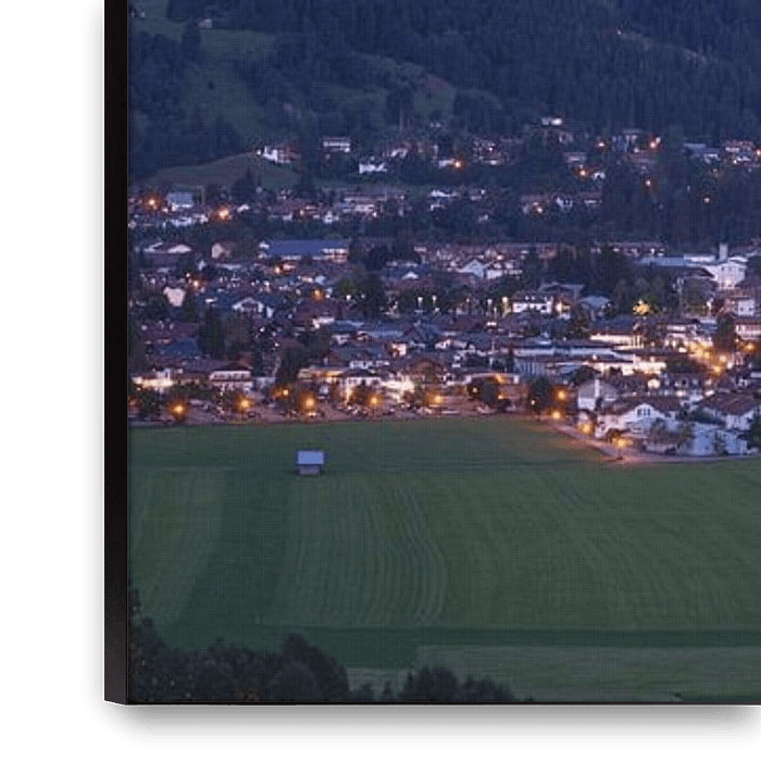 Bestelle das Foto Nachtaufnahme von Oberstdorf im Allgäu von Walter G. Allgöwer als Reproduktion auf Leinwand, Alu-Dibond, als Poster, Fototapete oder Acrylglasbild.