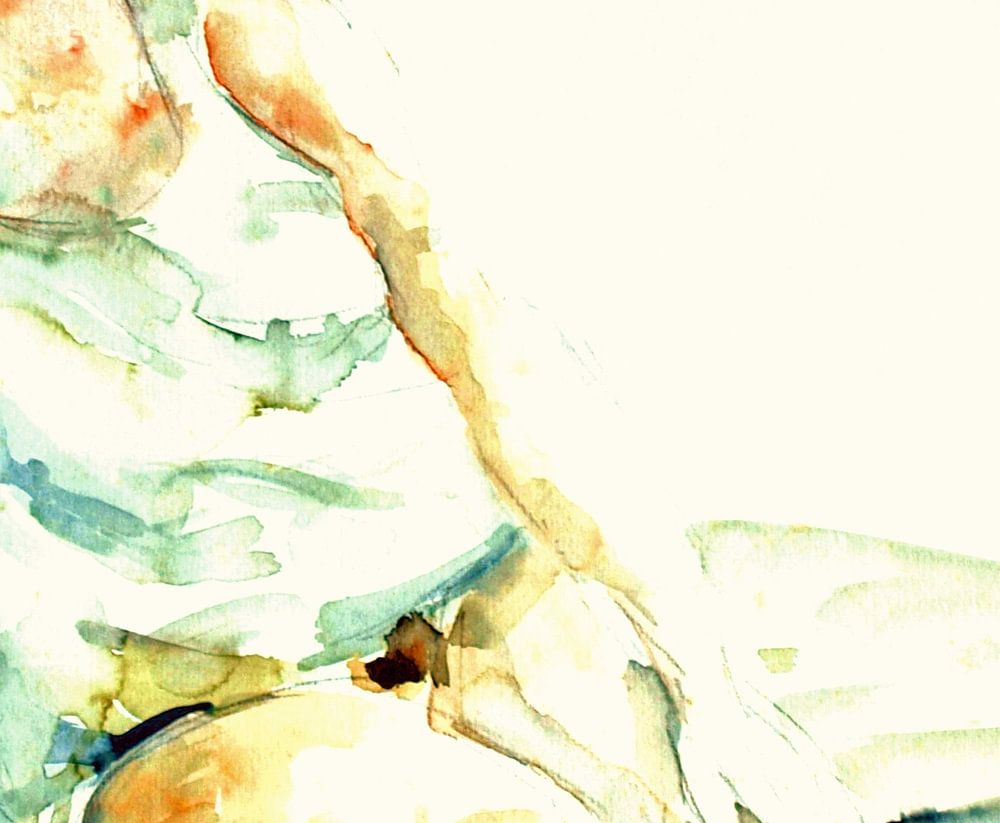 Aquarell /Frau / Weiblicher Akt / Pastellfarbe / Körper / Porträt / Aufwachen / Sitzen / Ausruhen / Nacktheit / Schönheit / Figurative Kunst / Warten / Erotik