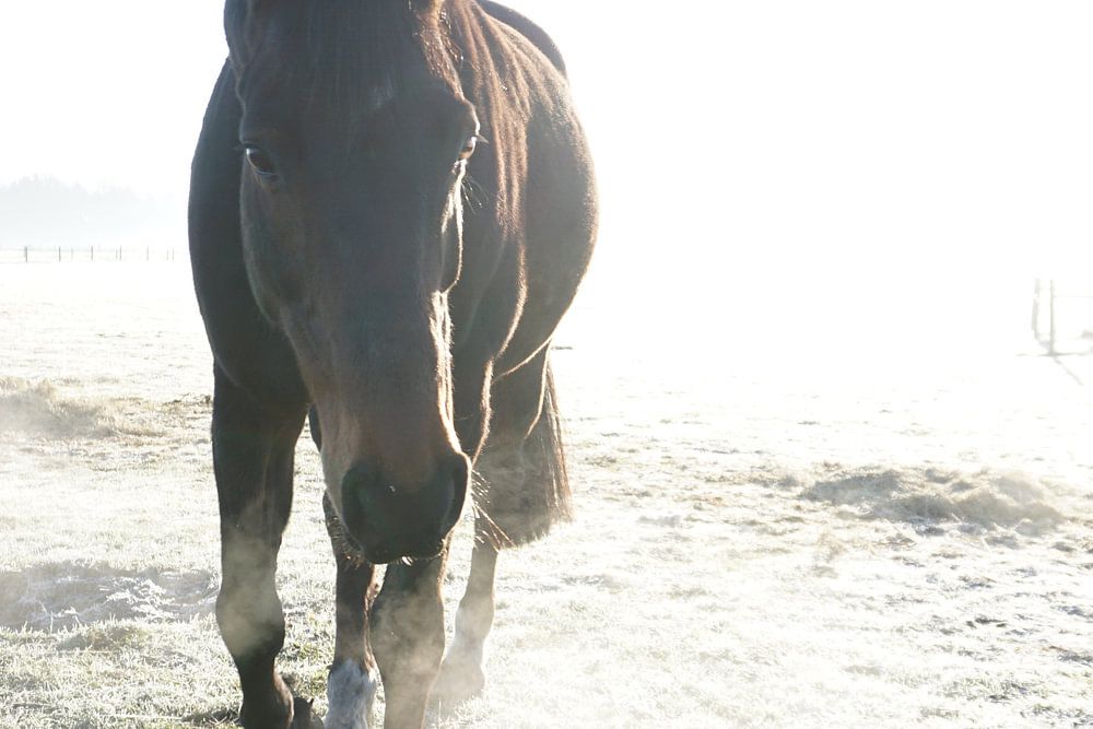 Paard met lichte overbelichting wat een mooi effect geeft. Op een weide in Drenthe. Het paard heet Sam.