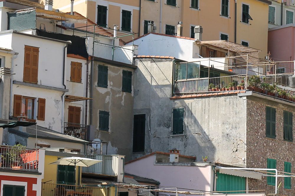 Farbige Häuser im Dorf Riomaggiore, einem der fünf Dörfer der Cinque Terre, Italien.