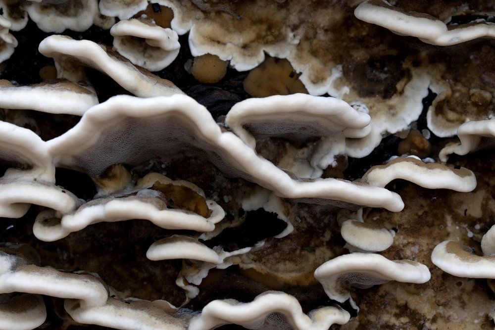 Nahaufnahme eines Feenbechers oder Trametes versicolor vor einem Baum