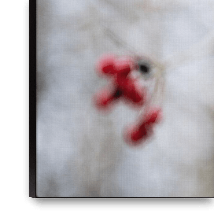 Bestelle das Foto Nahaufnahme von roten Beeren gegen einen Fotoabzug mit weissem Himmel von Manja Herrebrugh - Outdoor by Manja als Reproduktion auf Leinwand, Alu-Dibond, als Poster, Fototapete oder Acrylglasbild.