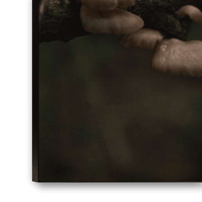 Auf einem alten Ast entfaltet sich ein Büschel Austernpilze, weich wie der Atem des Waldes.