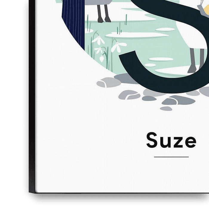 Bestelle diese Illustration Namensplakat Suze von Hannah Barrow als Reproduktion auf Leinwand, Alu-Dibond, als Poster, Fototapete oder Acrylglasbild.
