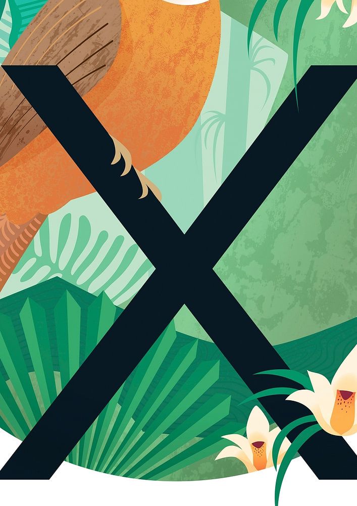 Und auf dem Baum blüht ein Xylobium, eine von 35 Orchideenarten mit diesem offiziellen Namen. Es sind ganz besondere Wörter, die mit einem X beginnen, genau wie dein Name!