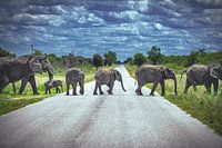 Namibia Elefantenherde auf der Straße von Jean Claude Castor