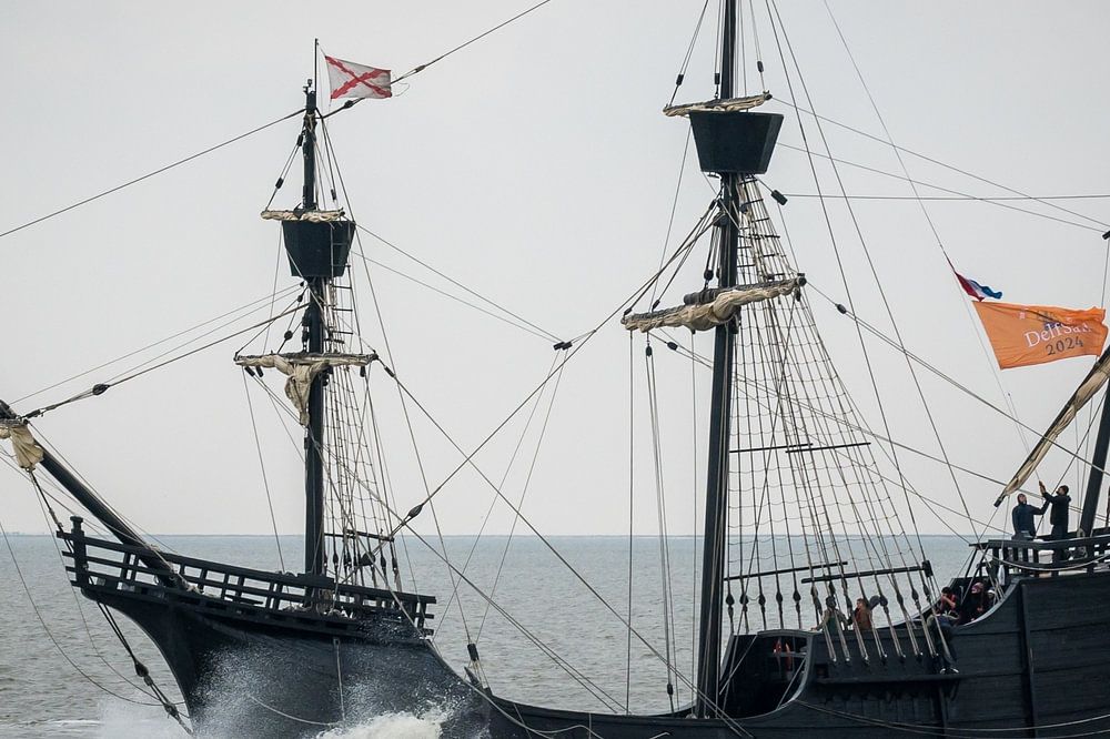 Replik der Nao Victoria mit dem Einsegeln der DelfSail 2024 auf dem Weg nach Delfzijl.