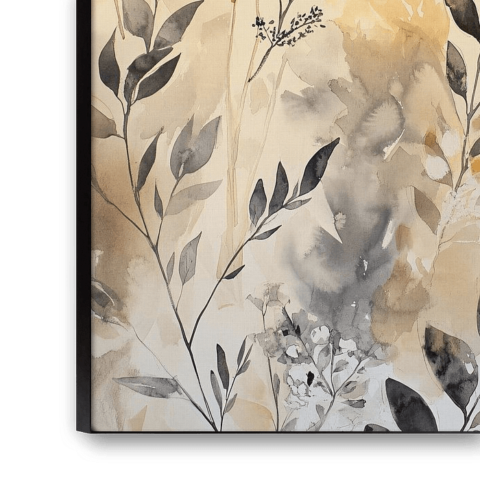 Dieses raffinierte Design mit zarten Blättern und Zweigen in warmen Sepia- und Grautönen bringt eine natürliche, ruhige Atmosphäre in jeden Raum. Die fließenden Pinselstriche und die subtile Farbgebung verleihen dem Werk eine minimalistische und ruhige Ausstrahlung. Dieses Kunstwerk, das sich ideal für Schlafzimmer oder andere entspannende Räume eignet, kombiniert die Sanftheit von Aquarellfarben mit der Detailgenauigkeit von Tinte und wirkt dadurch sowohl modern als auch zeitlos. Das Design lädt zu einem Moment der Ruhe und des Naturerlebnisses ein und passt perfekt in minimalistische oder natürliche Innenräume. Das Werk strahlt Schlichtheit und Eleganz aus und ist eine wunderbare Ergänzung für jeden Raum, der eine ruhige, stilvolle Atmosphäre braucht.