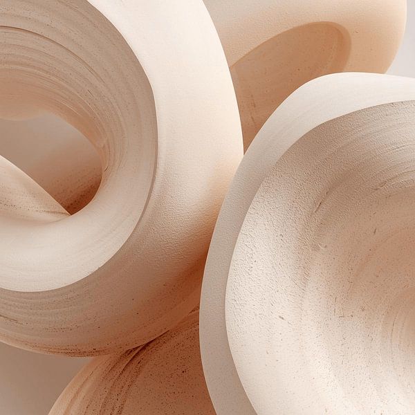 Runde Formen, weiche Linien und warme, neutrale Farben vereinen sich zu einem harmonischen Bild. Das Werk strahlt Ausgewogenheit und Schlichtheit aus und wirkt natürlich und zeitlos. Ein Kunstwerk, das Ruhe ausstrahlt und sich mühelos in moderne und natürliche Innenräume einfügt. Perfekt für Liebhaber von schlichter Einfachheit.
