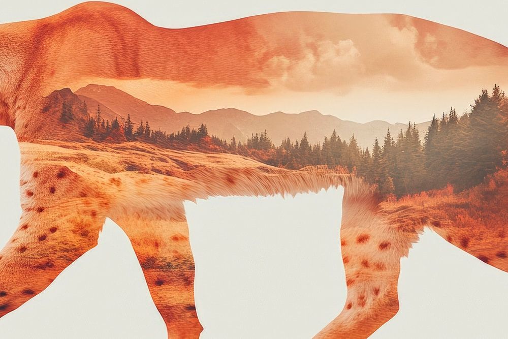 Ein majestätischer Raubkatze entfaltet sich in sanften, erdigen Tönen und verschmelzt mit einer malerischen Landschaft. Die lebendigen Berge und Wälder erzählen von Freiheit und Wildnis, während der eindrucksvolle Körper des Tieres Stärke und Eleganz ausstrahlt. Ideal für das Wohnzimmer, verleiht dieses Kunstwerk jedem Raum eine dynamische Note und inspiriert zu Abenteuern.