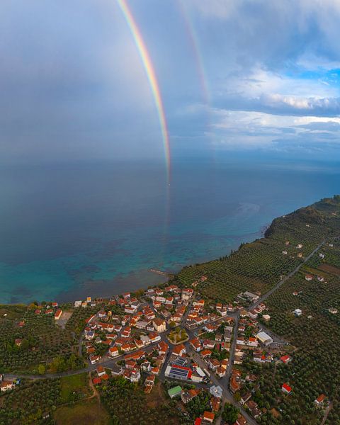 Bestelle das Foto Nea Koroni am Meer mit Regenbogen von Ewold Kooistra als Kunstdruck auf Leinwand, Alu-Dibond, als Poster, Fototapete oder Acrylglasbild.