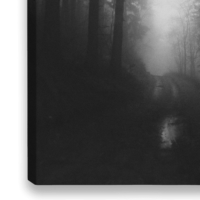 Nebel im Wald und ein nasses Objektiv sorgen für ein mystisches Schwarz-Weiß-Foto, das in Deutschland in der Nähe von Winterbergen aufgenommen wurde.