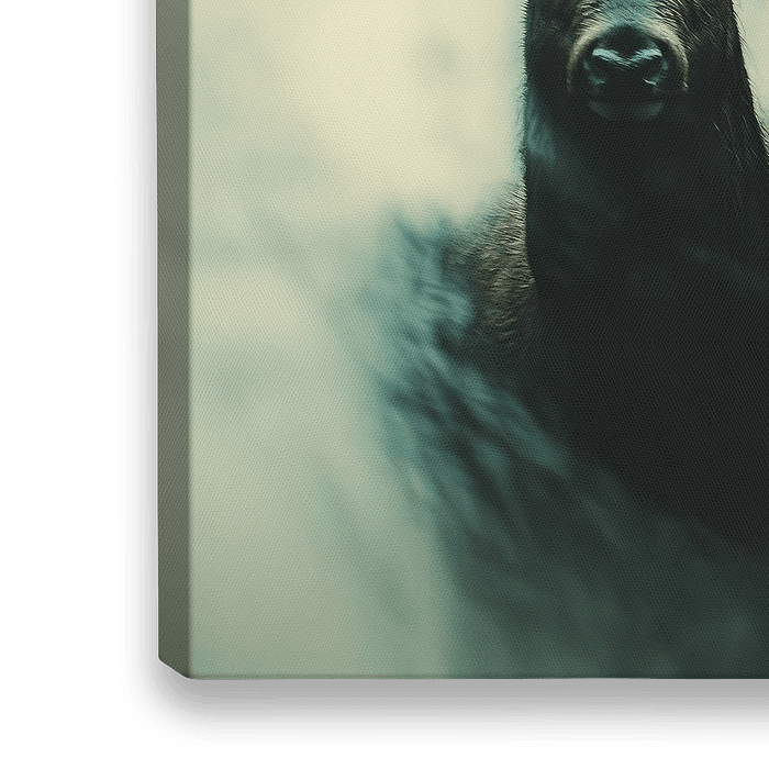 Dieses Kunstwerk zeigt einen majestätischen Hirsch, der aus einer dunstigen und ätherischen Umgebung auftaucht.