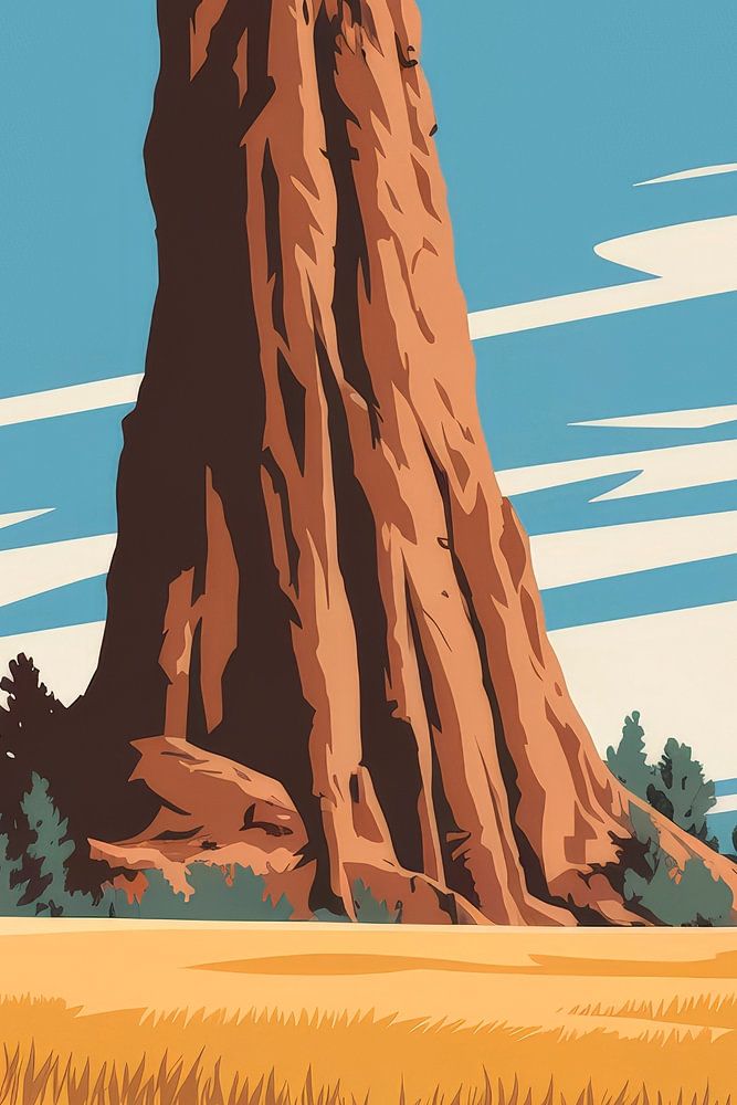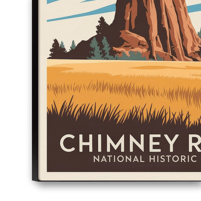 Majestätisch ragt der Chimney Rock in die Höhe, umgeben von sanften, goldenen Weizenfeldern und einem strahlend blauen Himmel. Diese eindrucksvolle Landmarke symbolisiert Abenteuer und Entdeckergeist. Ideal für das Wohnzimmer, verleiht sie einem Raum Charakter und erzählt Geschichten von Freiheit und Naturverbundenheit. Ein echter Hingucker für Reisefans und Naturfreunde!