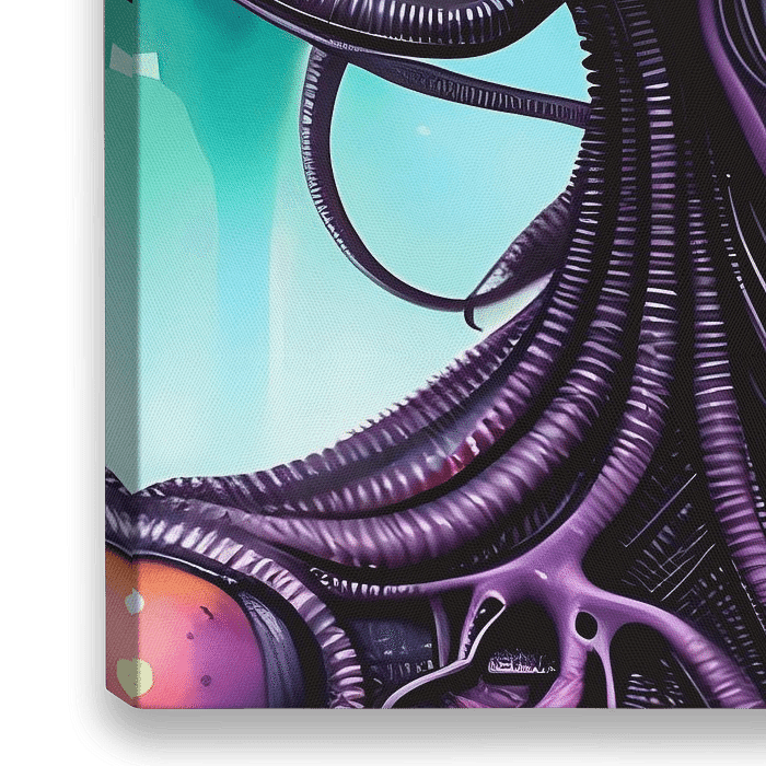 Nebulous Nurturer" ist ein bezauberndes Kunstwerk, das die Grenzen der Realität und des Jenseitigen auslotet. Dieses Aquarellporträt zeigt eine außerirdische Frau in der Seitenansicht, die in ein mystisches Violett gehüllt ist, das nahtlos in das Aquarellblau des Hintergrunds übergeht und eine Atmosphäre kosmischer Gelassenheit…