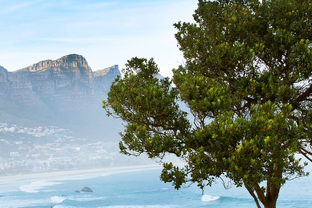 De eerste dag in Afrika was het al meteen raak en wel in Kaapstad. De stad zelf geeft mij het gevoel of ik gewoon weer in Rotterdam ben, met een leuke haven, reuzenrad en vele restaurants en winkeltjes. Niks speciaals aan eerlijk gezegd, maar als je dan de stad uitloopt zie je gigantische bergen. Rij erdoor heen en je komt bij de zee uit. Met een prachtige dag kon ik genieten van hel blauwe luchten en mooi blauw water. Deze boom en bankje maken de compositie af om de plaat bij jou aan de muur te hangen.