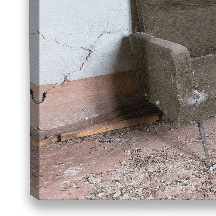 Sofa in einem verlassenen Wohnzimmer in einem verlassenen Haus in der Toskana, Italien. urbex