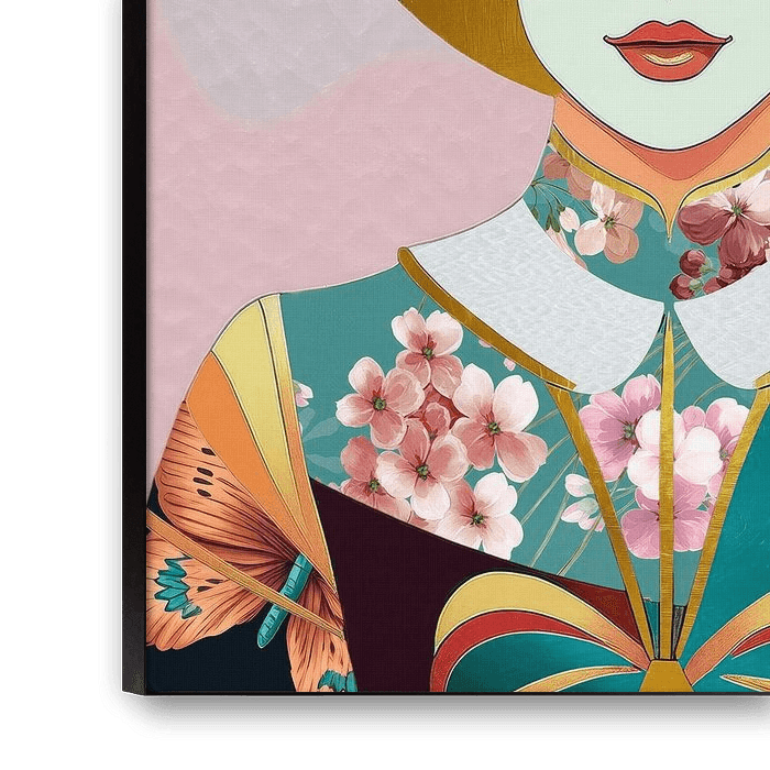 Dieses raffinierte Porträt ist eine schöne Verschmelzung von Neo-Pop Art und asiatischer Ästhetik, perfekt für ein schickes und kulturell reiches Interieur.