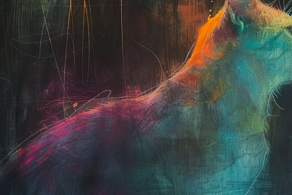 Details: Katze, abstrakt, Neon, Gemälde, künstlerisch, modern, bunt, Silhouette, Kontrast, dynamisch