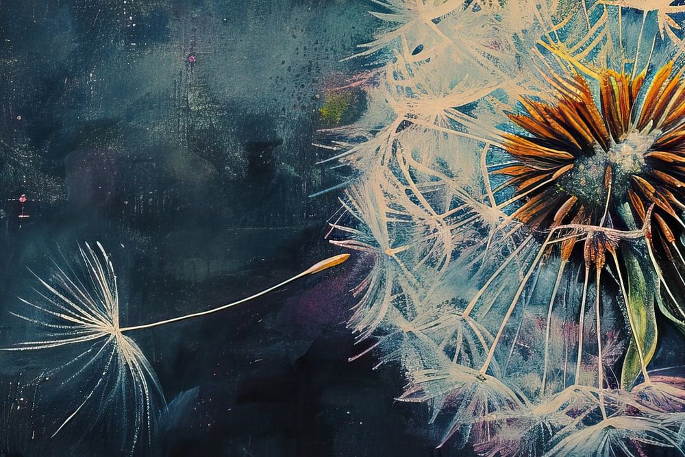 Neon Pusteblume | Cosmic Seed Voyage - Abstrakte Pusteblume Neon Malerei