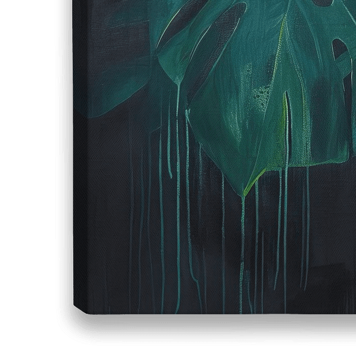 Details: monstera, abstrakt, neon, grün, schwarz, modern, Kunst, Malerei, tropisch, Blätter