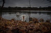 Bestelle das Foto Neugierige Schwäne auf einem Teich von Holger W. Spieker als Reproduktion auf Leinwand, Alu-Dibond, als Poster, Fototapete oder Acrylglasbild.