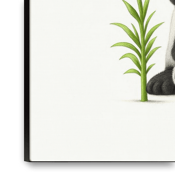Bestelle dieses Blumen-Wandbild Neugieriger Panda und Sprössling von Art & Soul Creations als Reproduktion auf Leinwand, Alu-Dibond, als Poster, Fototapete oder Acrylglasbild.