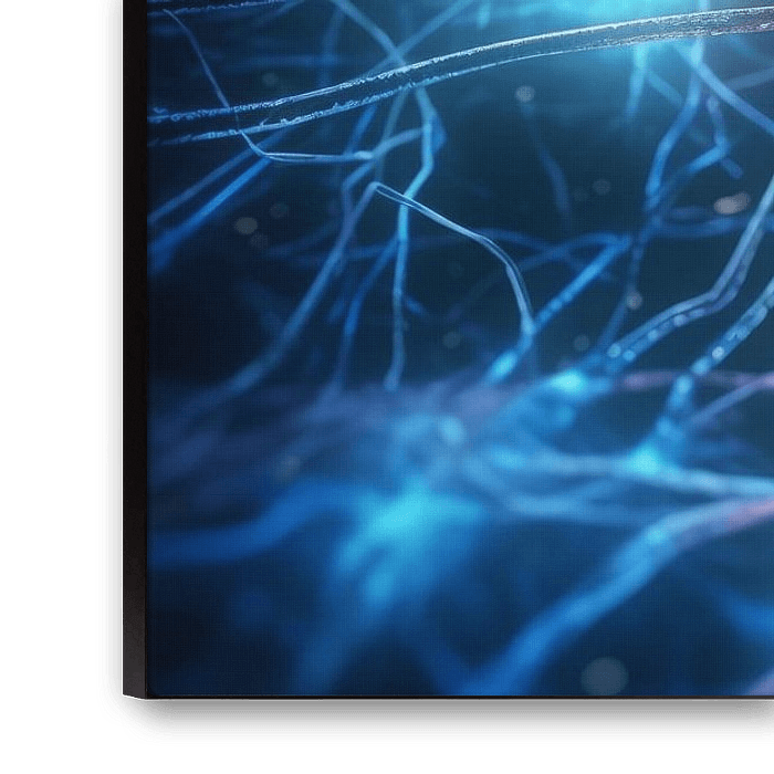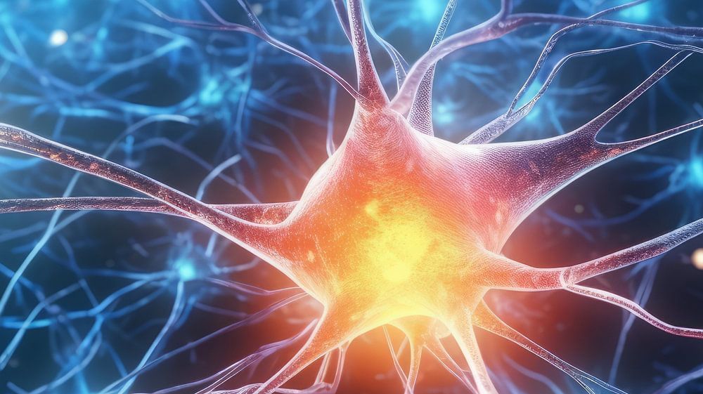 Neuronales Netzwerk mit elektrischer Aktivität von Neuronenzellen 3D-Rendering Illustration. Neurowissenschaft, Neurologie, Nervensystem und Impuls, Gehirnaktivität, Mikrobiologie Konzepte. Künstler Vision.
